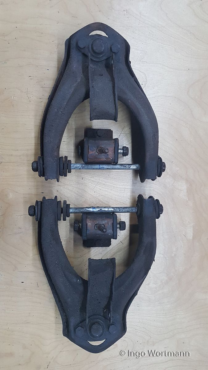 Die sandgestrahlte und pulverbeschichtete Achse ist zurück! Ein sehr gutes Ergebnis! Jetzt heißt es alles wieder zusammen zu bauen, was natürlich viel einfach geht als das auseinanderbauen. Lediglich das einpressen der unteren Gelenke musste mir eine gut bekannte Werkstatt übernehmen. Da war mein Schraubstock leider zu schwach für.